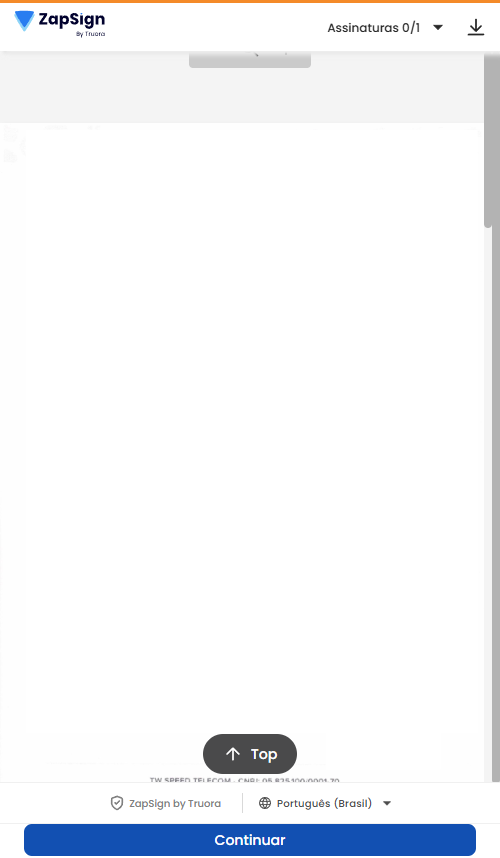 Clique no link enviado por e-mail, você irá para uma tela semelhante a essa abaixo, realize a leitura do documento e clique em Continuar: