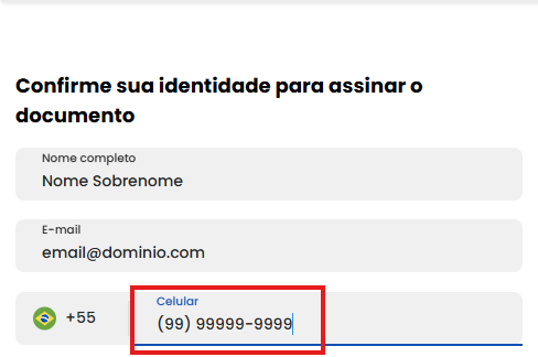 Os campos com seu nome e e-mail já estarão preenchidos automáticamente, confira se as informações estão corretas e insira seu número de telefone no campo indicado abaixo: