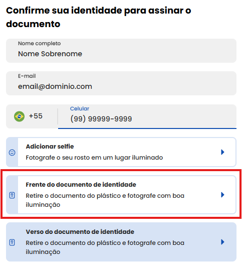 Tirar foto da frente do documento com foto
