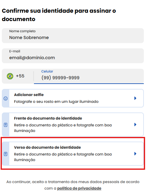 Tirar foto da verso do documento com foto