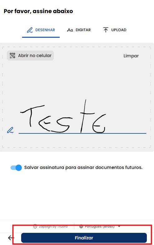 Basta assinar com seu primeiro nome e clicar em Finalizar: