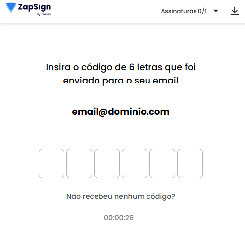 Acesse o seu e-mail e procure pelo código enviado (caso não esteja na caixa de entrada, verifique seu lixo eletrônico ou caixa de spam), e insira no campo: